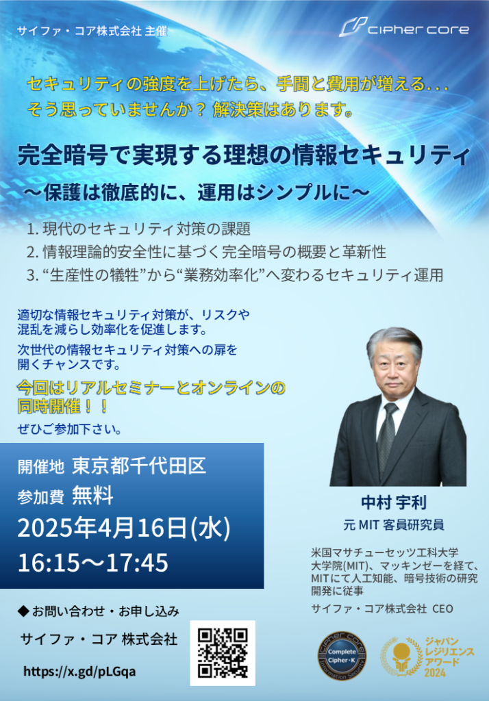 2025年4月16日(水) 弊社CEO 中村宇利 による 第8回 情報セキュリティセミナーを開催します!!