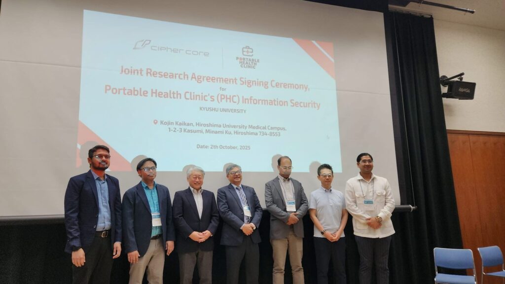 サイファ・コア株式会社(以下、当社)は、九州大学と、ポータブルヘルスクリニック(PHC)の情報セキュリティ強化を目的とする共同研究契約を正式に締結しました。